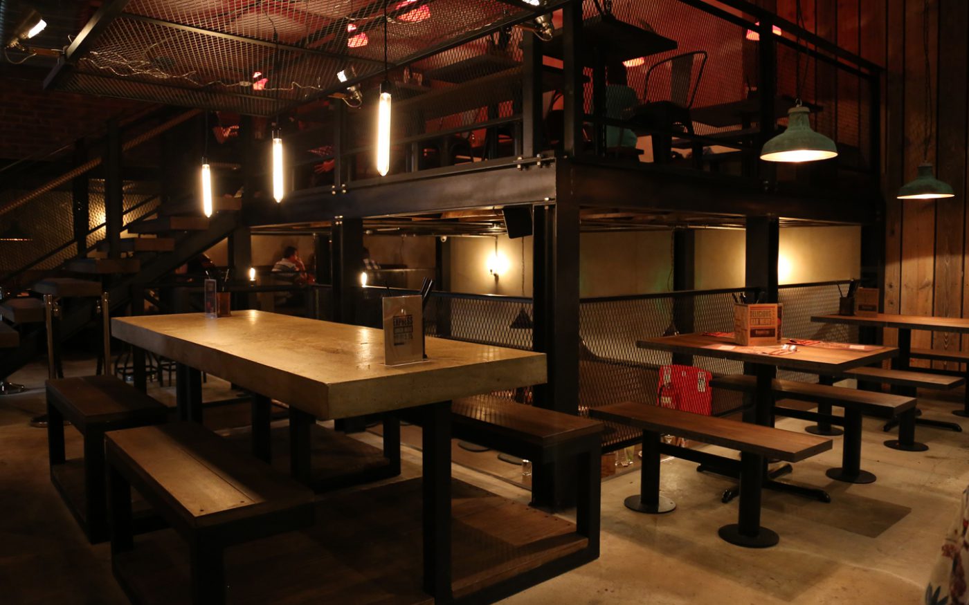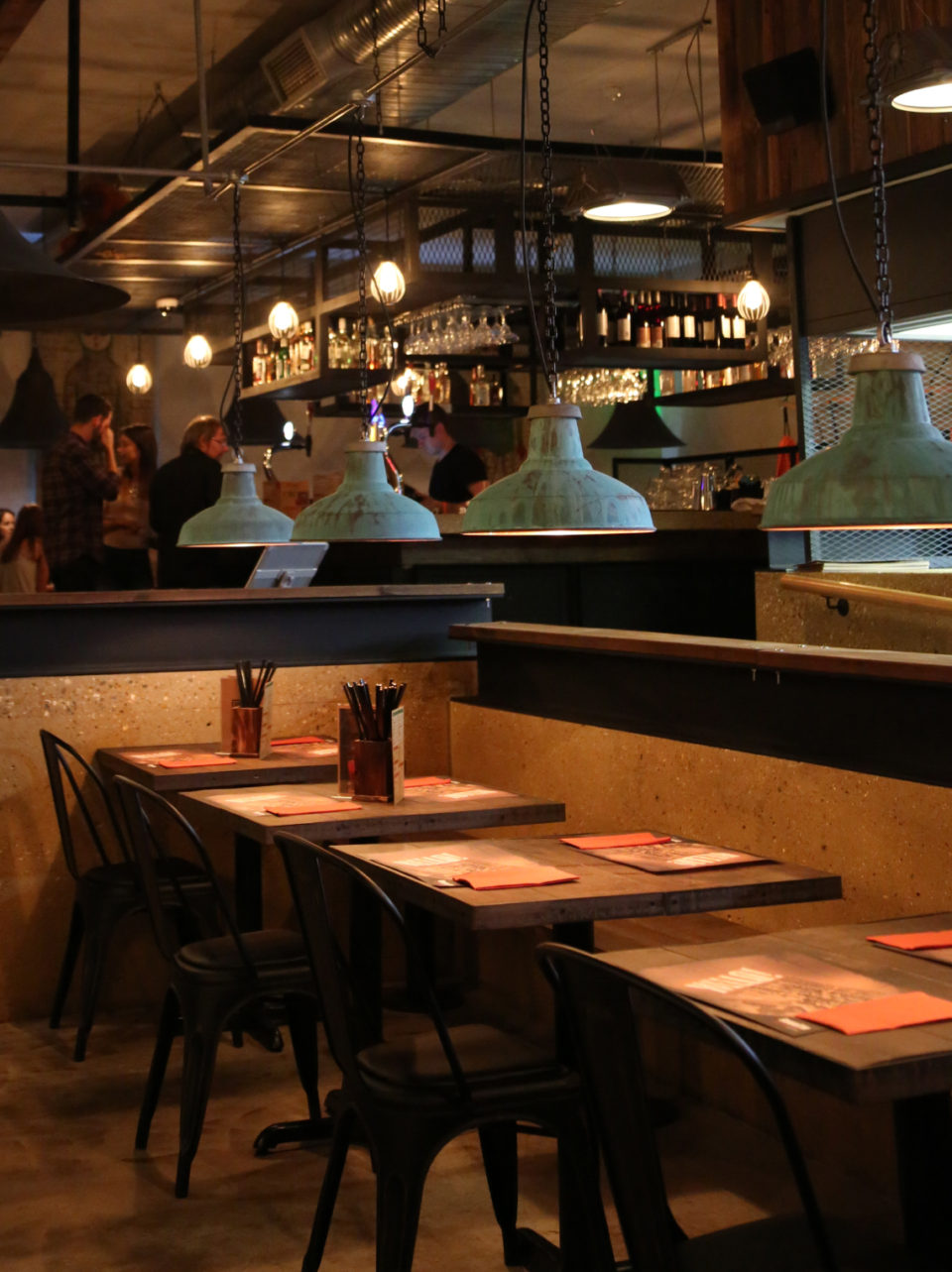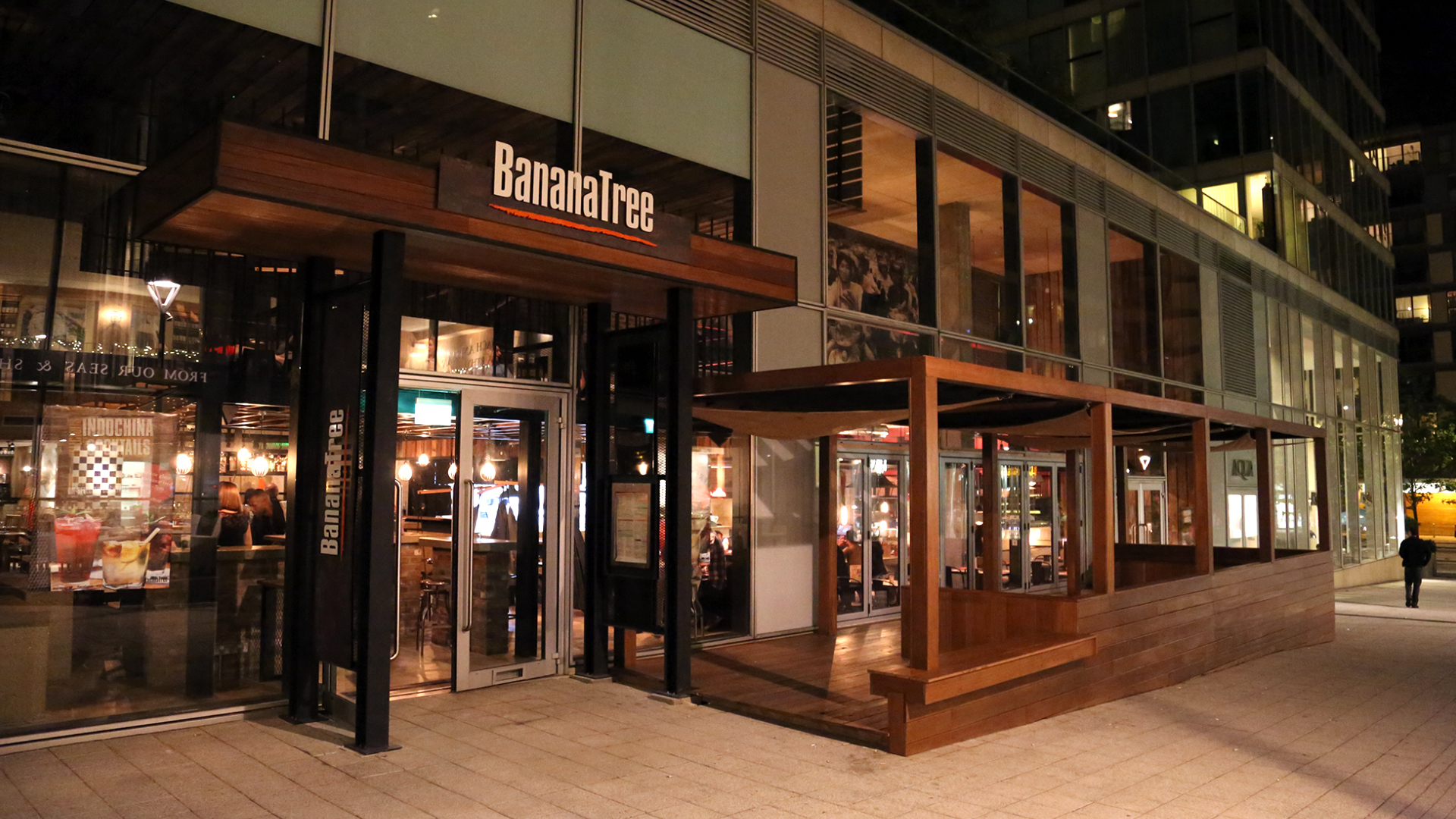 The Banana Tree restaurant in Milton Keynes is a fitout of space in the contemporary Brooklyn House. Serving Malaysian fusion cuisine, the Banana Tree brief was to create a variety of spaces, sometimes comforting and snug and in other parts of the restaurant, open and inviting. The material palette uses massive wood beams, exposed concrete and blackened steel to create galleries, sunken seating, hanging chairs and bespoke mood lighting fixtures.