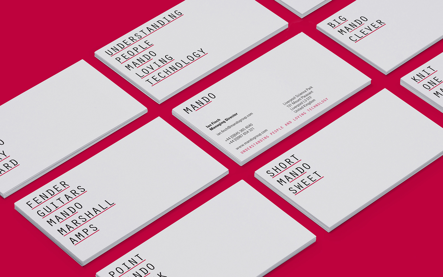Mando is a digital agency that produces online applications for some of the world’s smartest organisations. We saw the ‘and’ within Mando as an opportunity to express their personality.